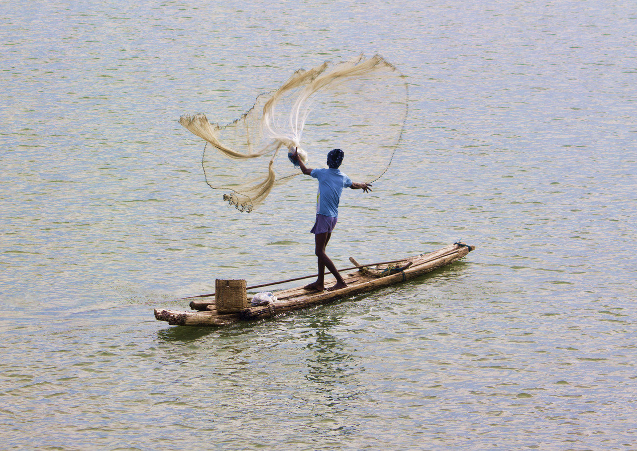 Fisherman Fishing at Ennore Creek, North Chennai, Tamil Nadu in India